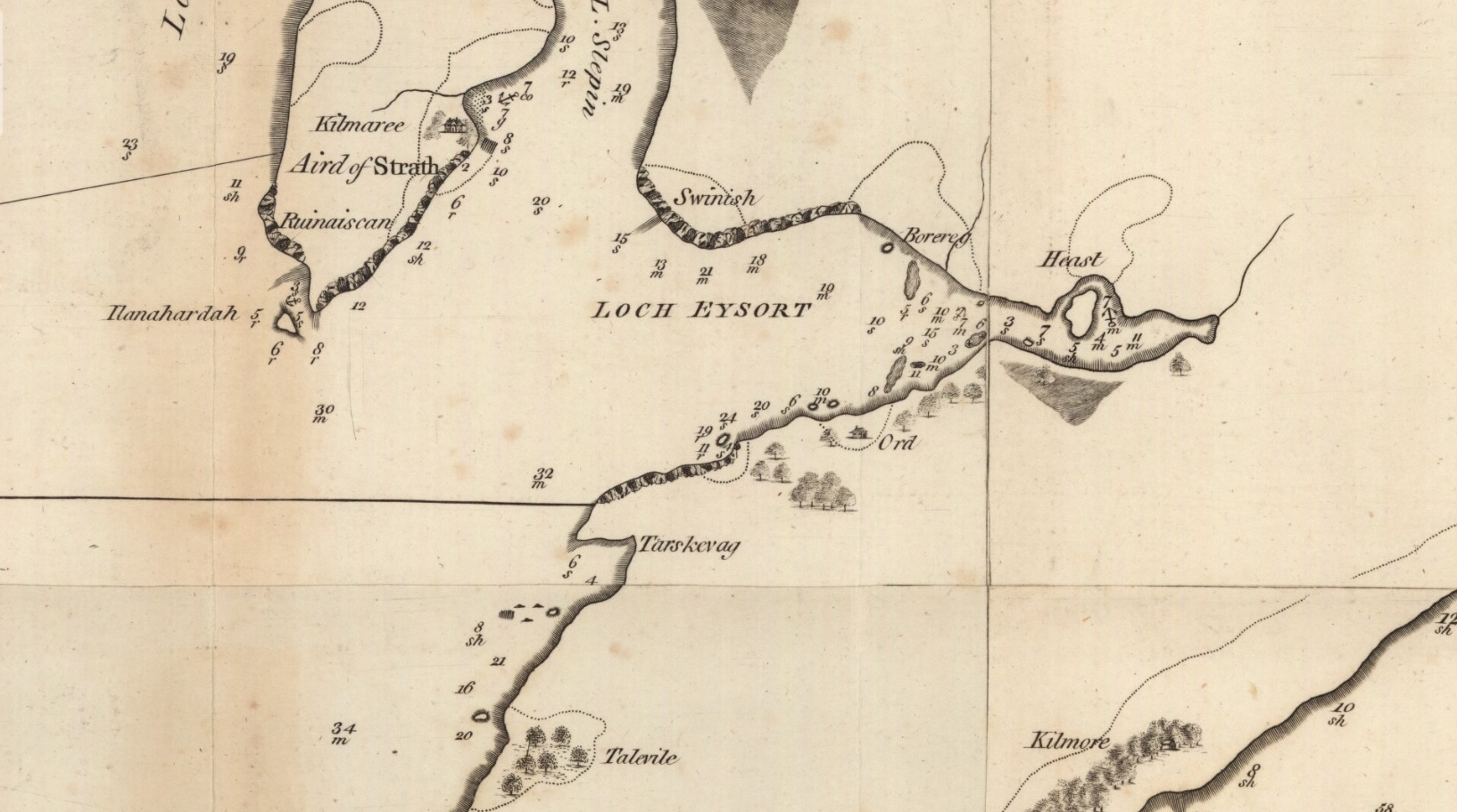 Heast: A light dry soil on limestone,g but the surface is broken and irregular, fit only for pasture or hay; the surface is much cut up by a number of small Rivulets running in deep dens. These Dens will help to reduce the expense of enclosing the lands very much. Value £70 (source: Blackadder (1800) Survey and a Valuation of Lord MacDonald’s Estate).