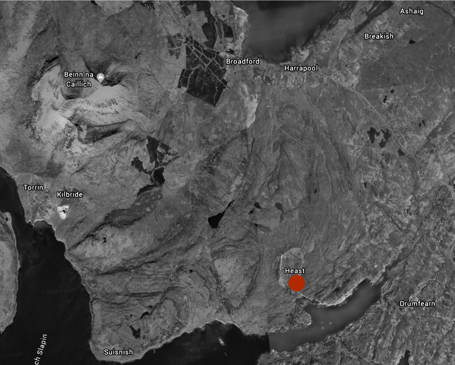 In 1845 the nearest church to Heaste was at Kilchrist, two miles to the west. People who died in Heaste would be carried over the hill on a ‘coffin route’ to Kilchrist to be buried. McIvor report that new church, with a capacity of 600, was being built in Broadford but there are current residents of Heaste who remember coffins being carried over the hill to Kilchrist well into the twentieth century.