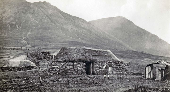 McIvor reported positively on the improvement in communications since the 1793 report. There were more roads (‘30 miles of parliamentary road and 10 of statute labour pass through the parish’), more steamers. During the summer months there was a weekly steamboat to Glasgow which took 36 hours- a journey that formerly took 15 days (New Statistical Account, 1845, p311). There was also a better postal system. McIvor reported that in 1845 the post arrived and was dispatched three times a week and that letters to London took three days to arrive rather than the ten they took in 1793. However, the improved communications infrastructure appeared not to result in any noticeable benefit to the economic and social condition of crofting families. McIvor reports that crofters still made their own clothes and their diet was principally potatoes and herring with some meal and milk. By 1845 tea, imported by ‘vagrants’, was beginning to popular. As for housing McIvor reports: