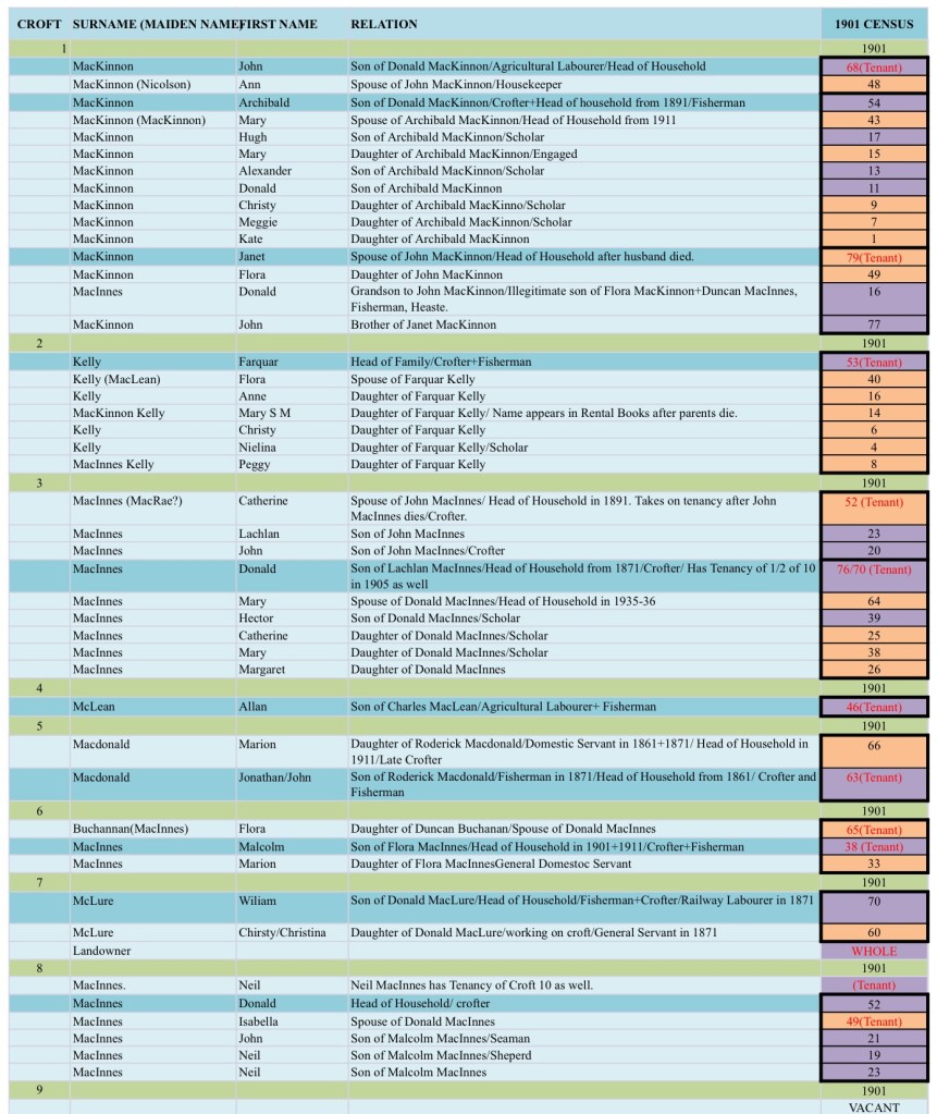 The 1901 Census lists the following people living in Heaste:
