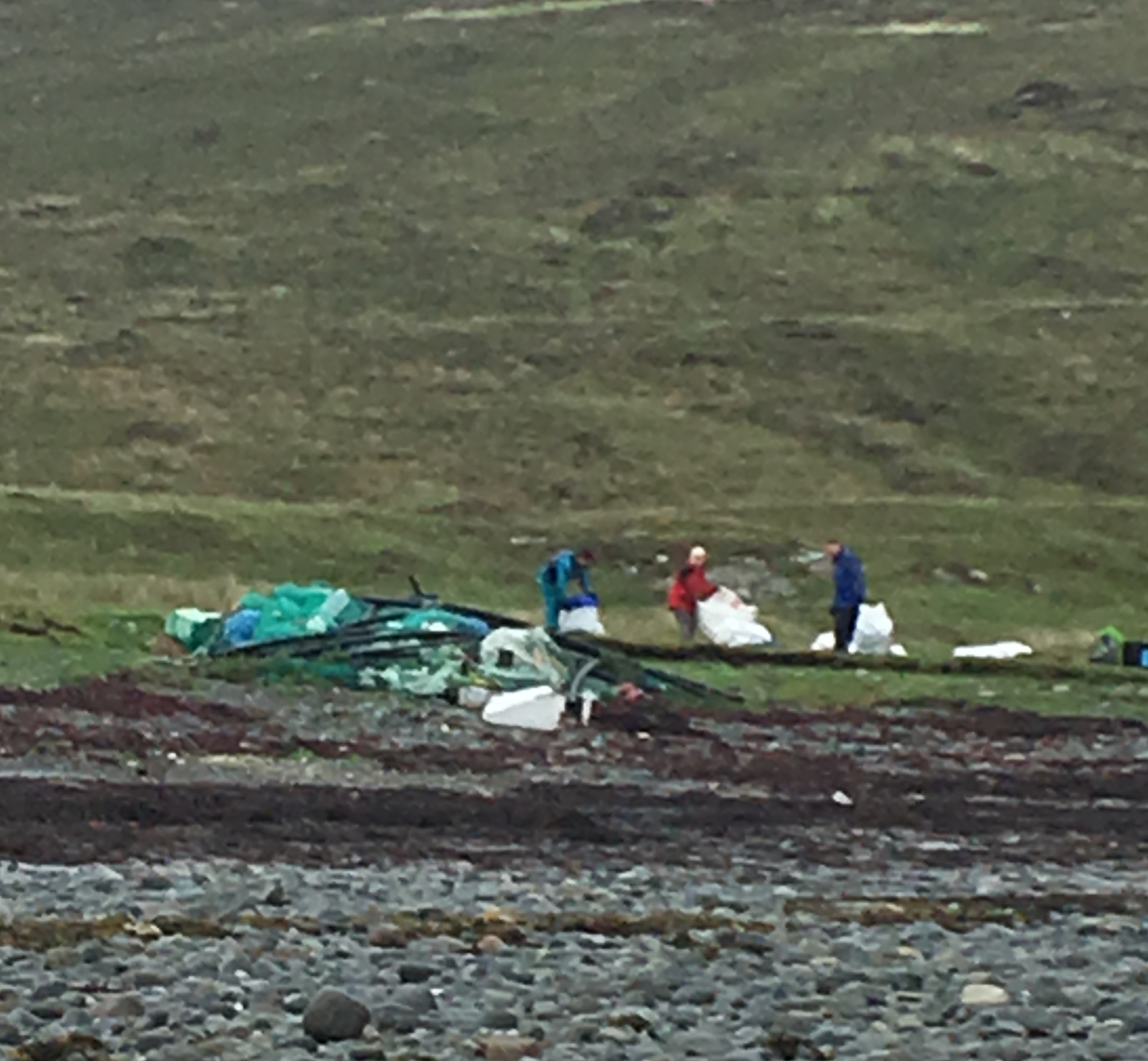 Sadly the weather was not on our side today. However the valiant residents of Skye aren’t put off by the weather. The rubbish on Camasunary beach had been building up over many years but today we managed to remove by boat about 60 sacks of plastics, rope and other rubbish. There is still more to do but there will be another beach clean day organised for August.